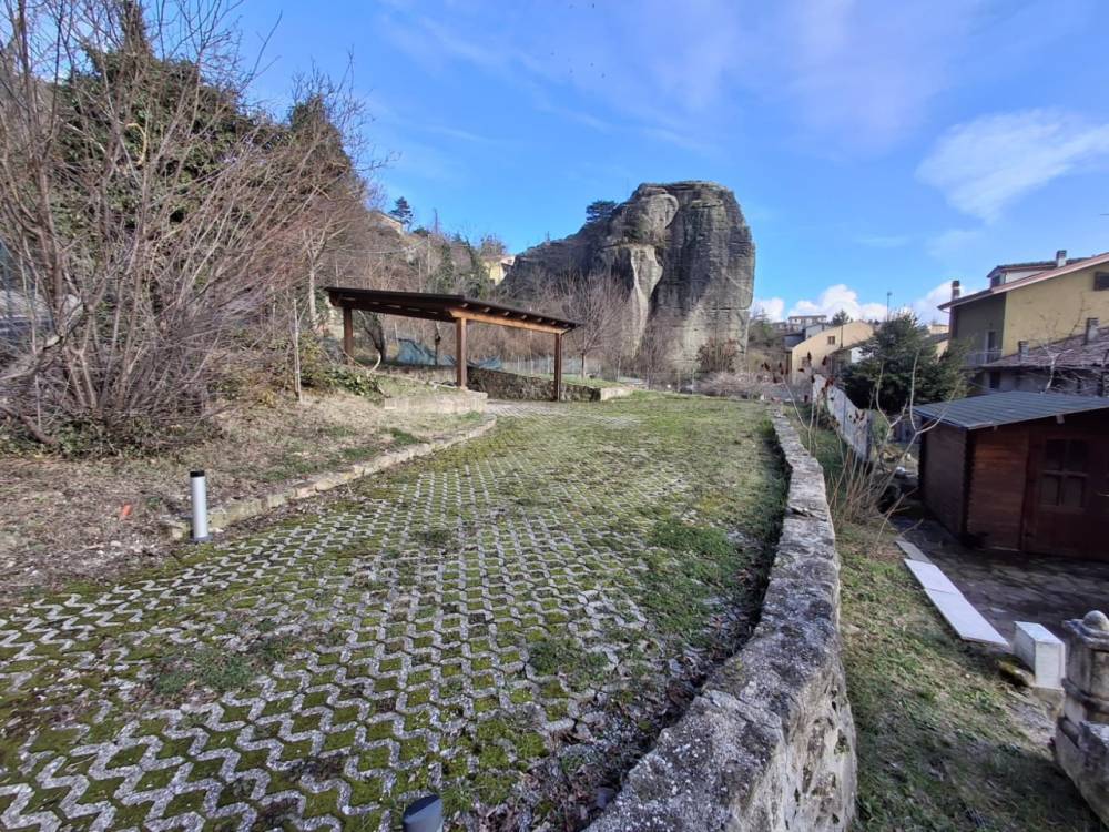 PERTICARA centro, casa abbinata su un lato, in ottime condizioni disposta su tre piani, composta da ampio soggiorno con camino, cucina, quattro camere, tre bagni, spazioso garage, cantine, oltre a tre posti auto e mq 600 di giardino con tettoia.