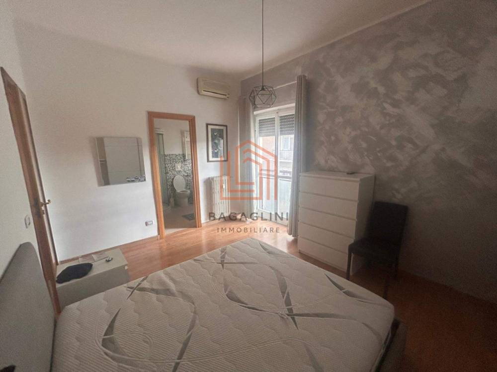 La zona notte è composta da una camera matrimoniale ben proporzionata e silenziosa, oltre a un servizio finestrato finemente rifinito. Completa la proprietà un balcone con affaccio su Via del Corso, ideale per godere della vivacità del centro cittadino.