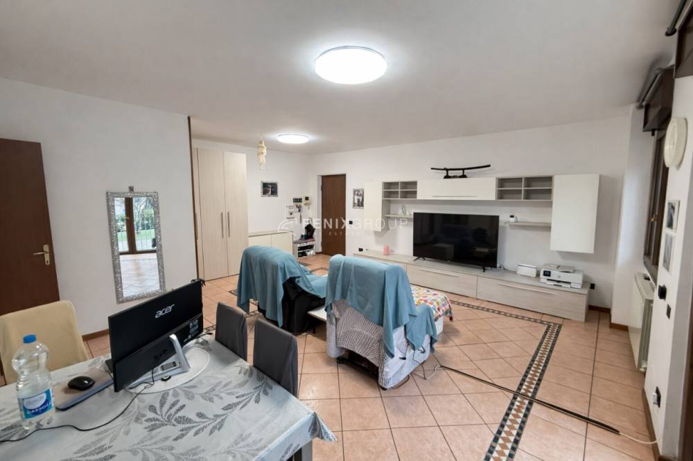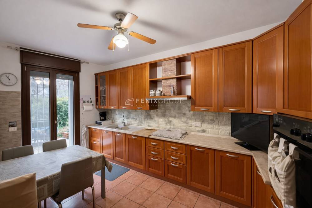 L’ingresso apre su un soggiorno di generose dimensioni, particolarmente luminoso e ideale per chi desidera vivere ambienti ampi e confortevoli. Accanto si trova la cucina abitabile, anch’essa di comode dimensioni. Sia dal soggiorno che dalla cucina è possibile accedere direttamente al giardino privato di circa 100 mq, uno spazio esterno riservato e perfetto per la vita all’aperto.