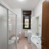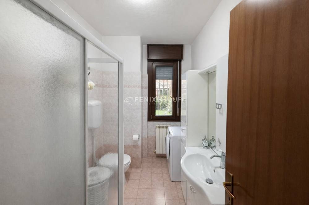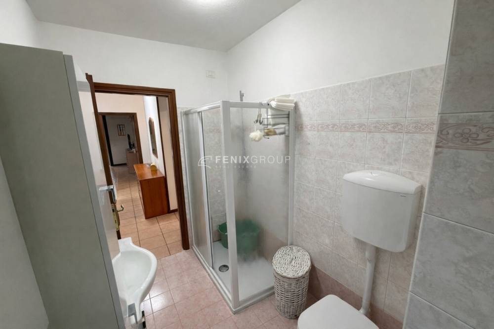 Tra il soggiorno e la cucina è collocato il primo bagno, finestrato, comodo per la zona giorno e per gli ospiti.