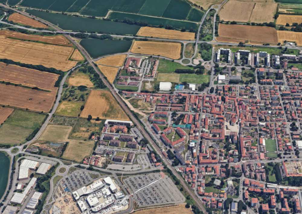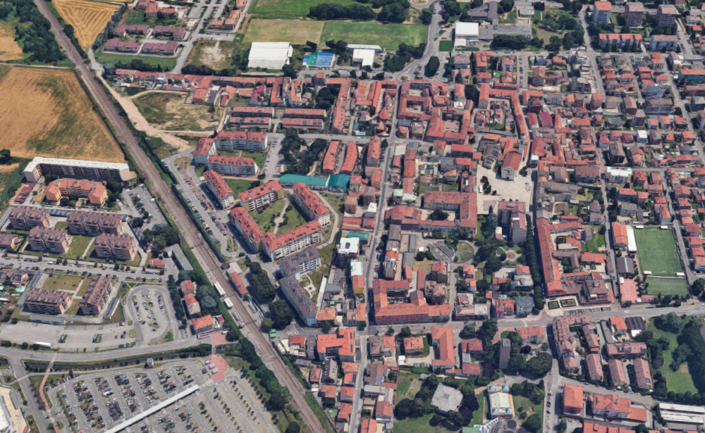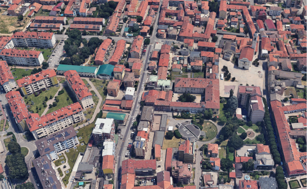Appartamento sito a Locate di Triulzi (MI) in Piazza della Vittoria. L'immobile si sviluppa su più livelli: al piano terra sono presenti l'atrio di ingresso e il vano scala a pianta semi-ellittica con sbarco al piano primo; al piano primo l'unità è composta da ingresso da vano scala condominiale, ripostiglio, disimpegno, soggiorno, secondo ripostiglio, cucina, camera da letto, bagno e balcone. Completano il lotto due garage, ciascuno con superficie di 19 mq.