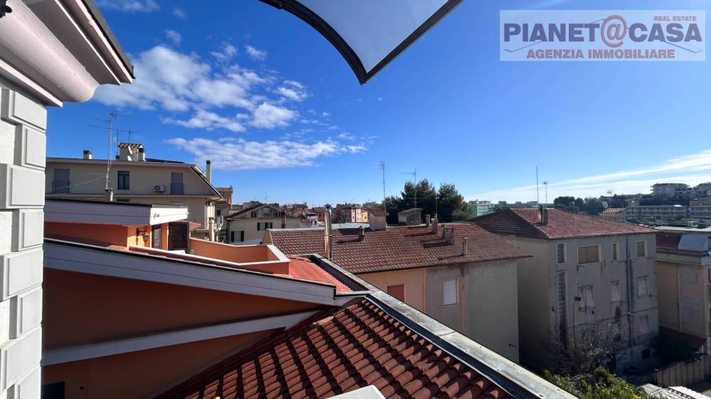 L'immobile, molto luminoso e soleggiato grazie all'ottima esposizione, si trova in una zona tranquilla e residenziale ma allo stesso tempo vicina a tutti i principali servizi e al mare e gode di una splendida vista aperta a sud e ad est sul caratteristico Torrione della città alta.