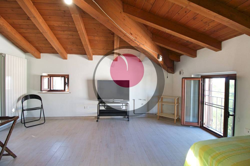 Appartamento duplex al primo piano (90mq): patio esterno con ingresso, disimpegno, soggiorno con cucina a vista e affaccio su balcone, camera matrimoniale e bagno. Al piano superiore, mansarda con ampio open space, camera matrimoniale e bagno.