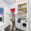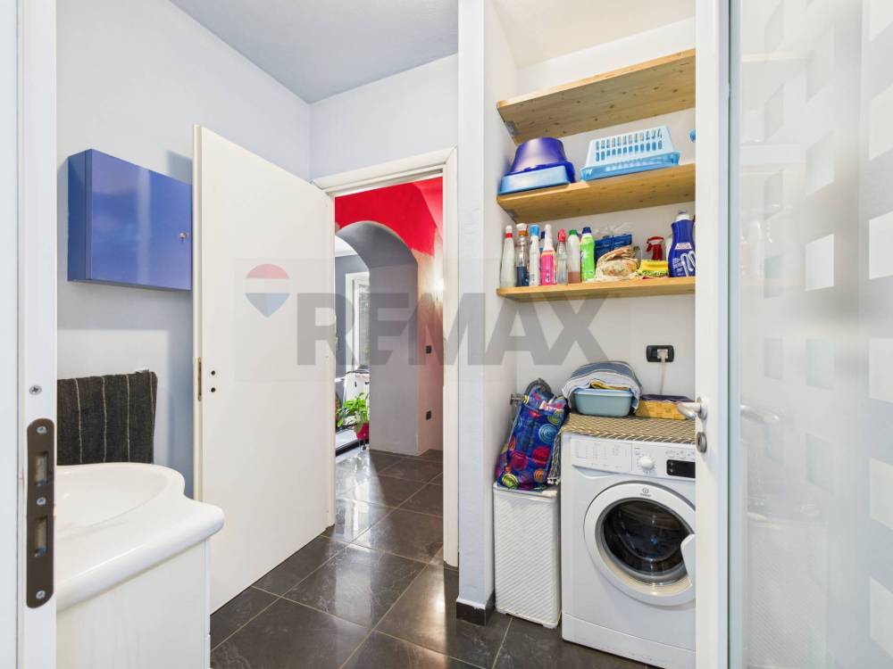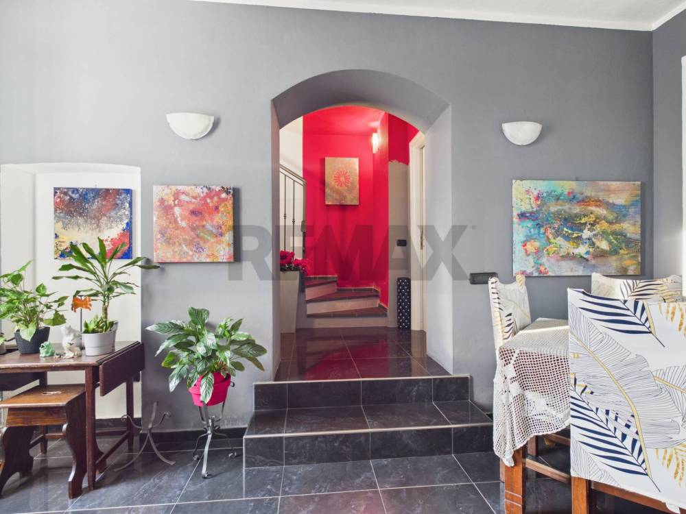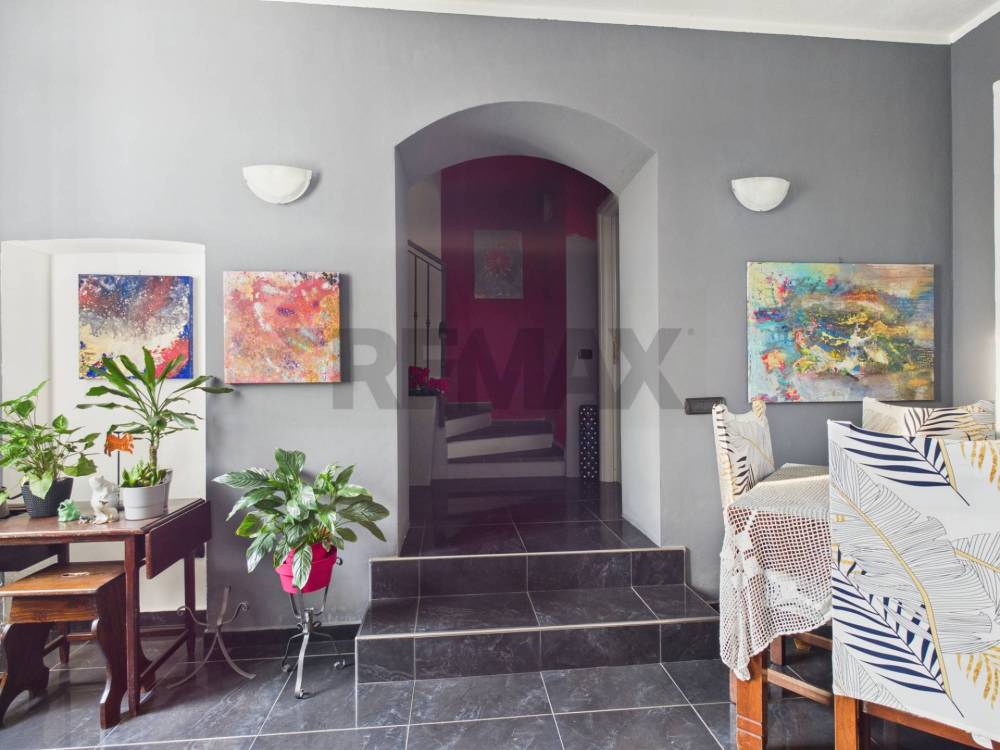 Dall'ingresso troviamo un grande soggiorno spazioso , una cucina comoda all'americana che tramite una porta vetrata comunica con il porticato del cortile esterno del retro della casa. un bagno e uno sgabuzzino completano il piano terra.