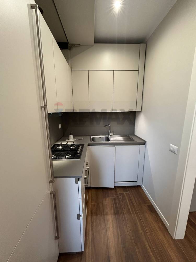 Cucina: Ambiente separato ma comunicante tramite un’ampia apertura moderna, che garantisce funzionalità e respiro architettonico.