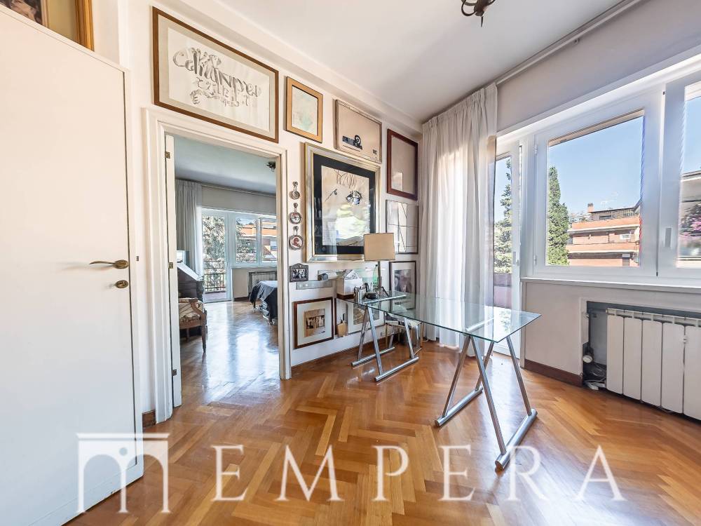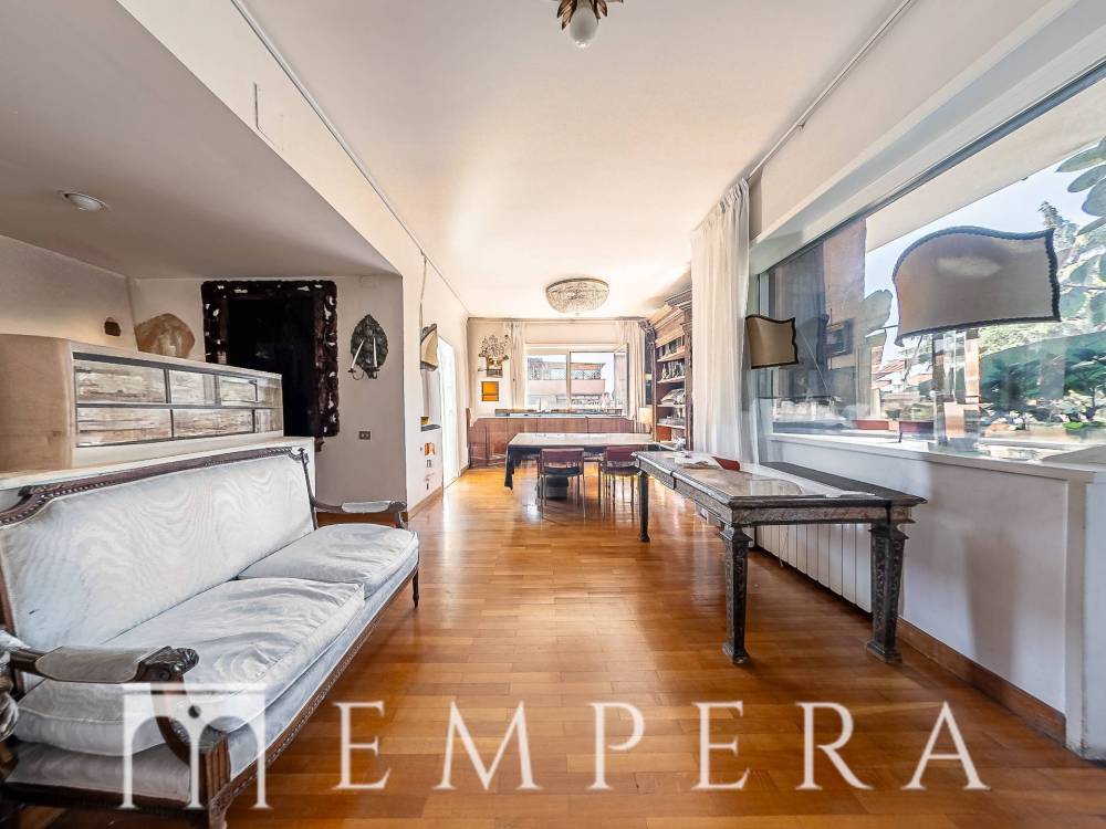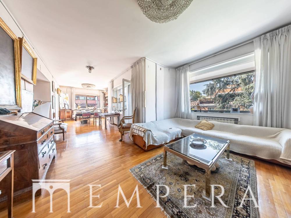 A pochi passi da Piazzale Ponte Milvio, in una delle zone più richieste di Roma Nord, precisamente in Via Della Farnesina proponiamo la vendita di un meraviglioso attico di ampia metratura, divisibile, posto all'ultimo piano di uno stabile in cortina in ottime condizioni dotato di doppio ascensore con servizio di portineria. L'appartamento è dotato di 2 ampi terrazzi abitabili a livello, dei quali uno semi-perimetrale con affacci aperti e luminosi. L'immobile attualmente è composto da doppio ingresso, salone triplo con ampie vetrate, 4 ampie camere da letto (due con bagno in camera), 1 cameretta, studiolo, ampia cucina abitabile con accesso ad uno dei terrazzi, 3 servizi, ripostigli, box auto, ampia cantina. In fase di ristrutturazione, la presenza di tramezzature permette una diversa ridistribuzione degli spazi interni e la realizzazione di un eventuale altra camera da letto ed un quarto servizio.