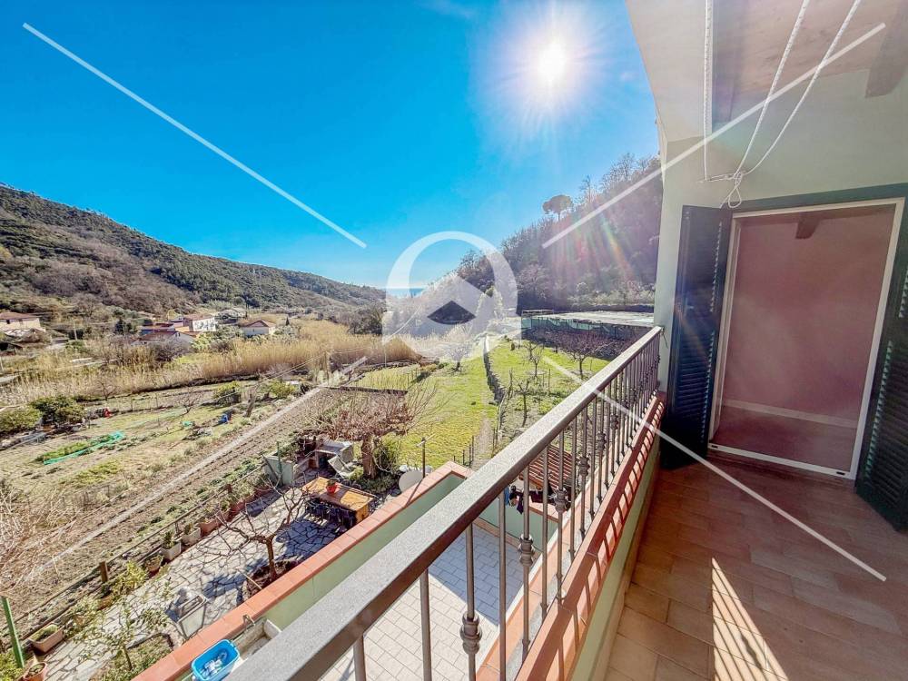 In tipica Borgata Ligure, nel Centro del Paese, proponiamo in vendita esclusiva soluzione di 100 mq al secondo ed ultimo piano di una villetta di sole quattro unità abitative, composta da ingresso su disimpegno, ampia e luminosa zona giorno con angolo cottura dalla quale si accede al terrazzo con splendida Vista Mare e sulla Vallata, due camere da letto matrimoniali, bagno finestrato e ripostiglio.