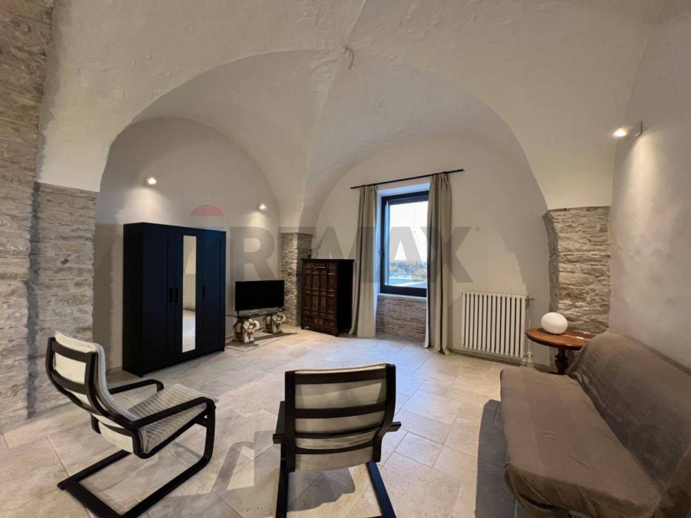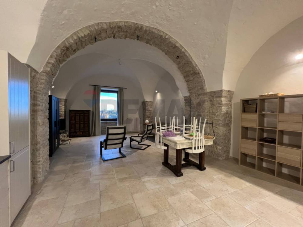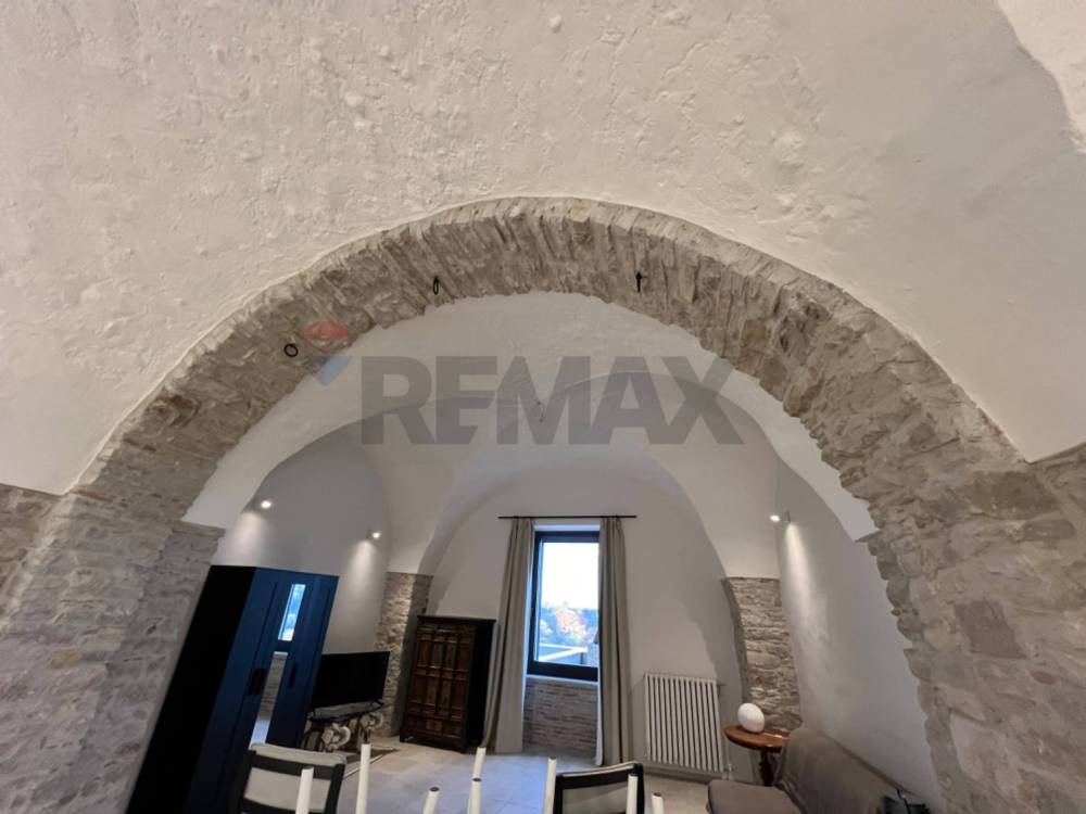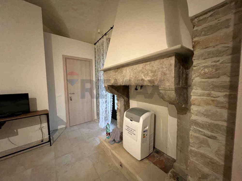 Tutto lo stabile è costruito in pietra venosina, internamente l'appartamento si apre con un grande salotto con soffitti a volte alti 4 metri. Qui troviamo la cucina completamente attrezzata in stile con tutta la casa. La zona living è sovrastata dalla grande finestra da cui entra una splendida luce e da dove si può ammirare tutta la vallata. A completare troviamo la bella camera padronale con camino in pietra ed il bagno en suite oltre ad un piccolo ripostiglio.