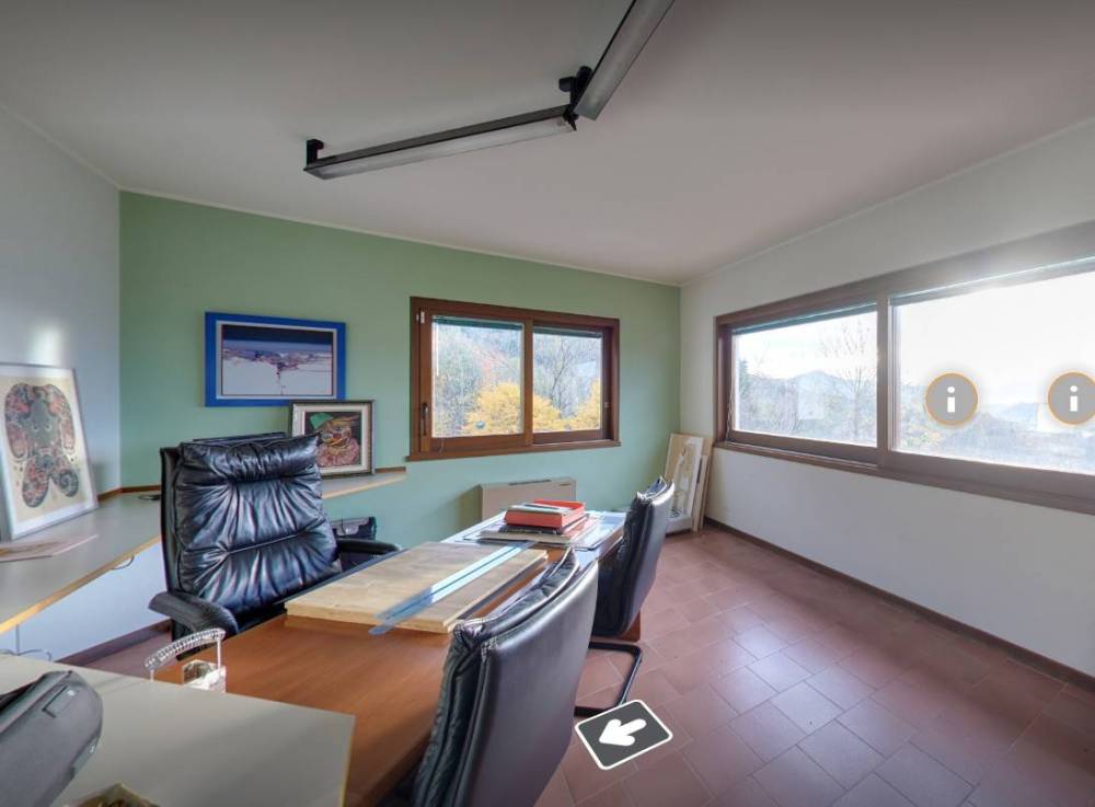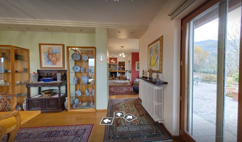La villa singola è immersa nel parco privato di oltre Mq. 6.500 con boschi e panorami stupendi.