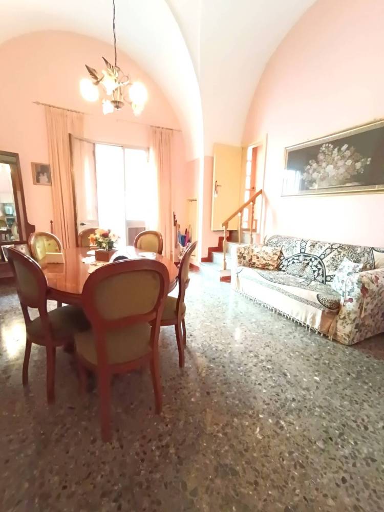 Al piano terra si viene accolti da un soggiorno con suggestive volte a stella, che donano carattere e autenticità agli ambienti. Segue una cucina abitabile con camino, un bagno e una veranda sul retro, dalla quale si accede direttamente al box auto, soluzione estremamente pratica.