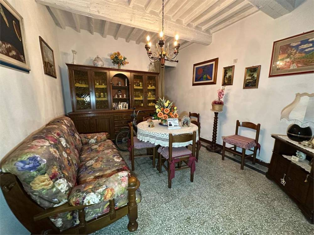 L'immobile si sviluppa su tre livelli e si compone da; piano terra, ingresso in soggiorno, cucina con camino e ripostiglio, al primo piano disimpegno, camera matrimoniale e bagno, al piano superiore mansardato camera matrimoniale e camera singola.