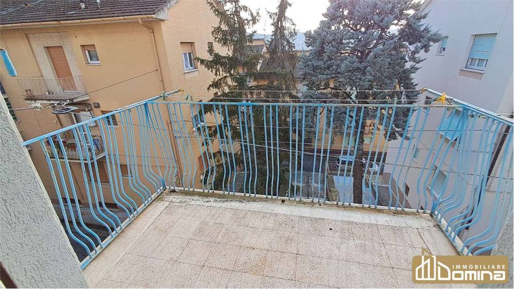 L'immobile si apre su un ampio soggiorno luminoso con accesso a un primo terrazzino, perfetto per momenti di relax. La cucina è abitabile e dispone di un secondo terrazzino con vista aperta sulla città, che dona ariosità e luce all'ambiente. La zona notte è composta da due camere matrimoniali, un bagno e un comodo ripostiglio.