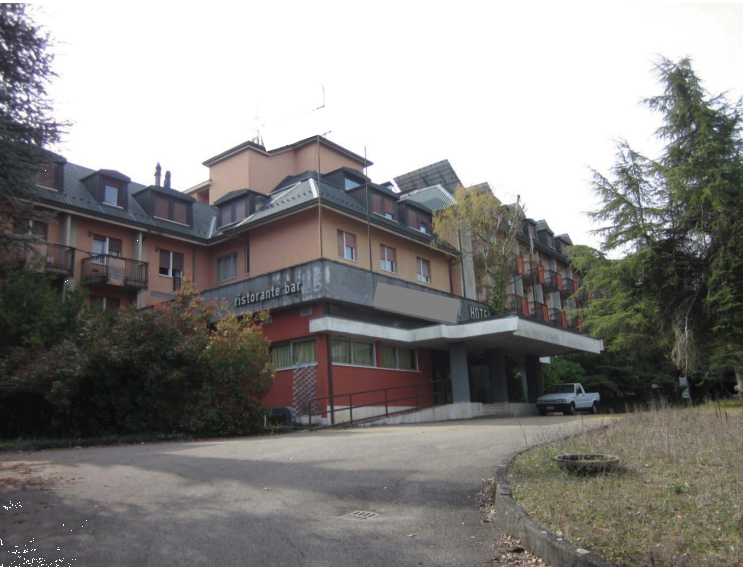 Il complesso è inserito in un'ampia area esterna prevalentemente adibita a giardino, con pertinenze e locali tecnici, e si configura come una struttura ricettiva di grandi dimensioni con rilevanti potenzialità di riqualificazione.