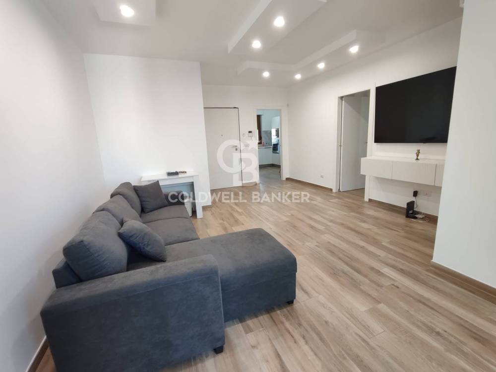 Gli spazi interni sono ben distribuiti e funzionali: l’ingresso si apre su un luminoso soggiorno con balcone, la cucina abitabile dispone di un secondo balcone adibito a zona lavanderia, seguono tre camere da letto e un bagno.