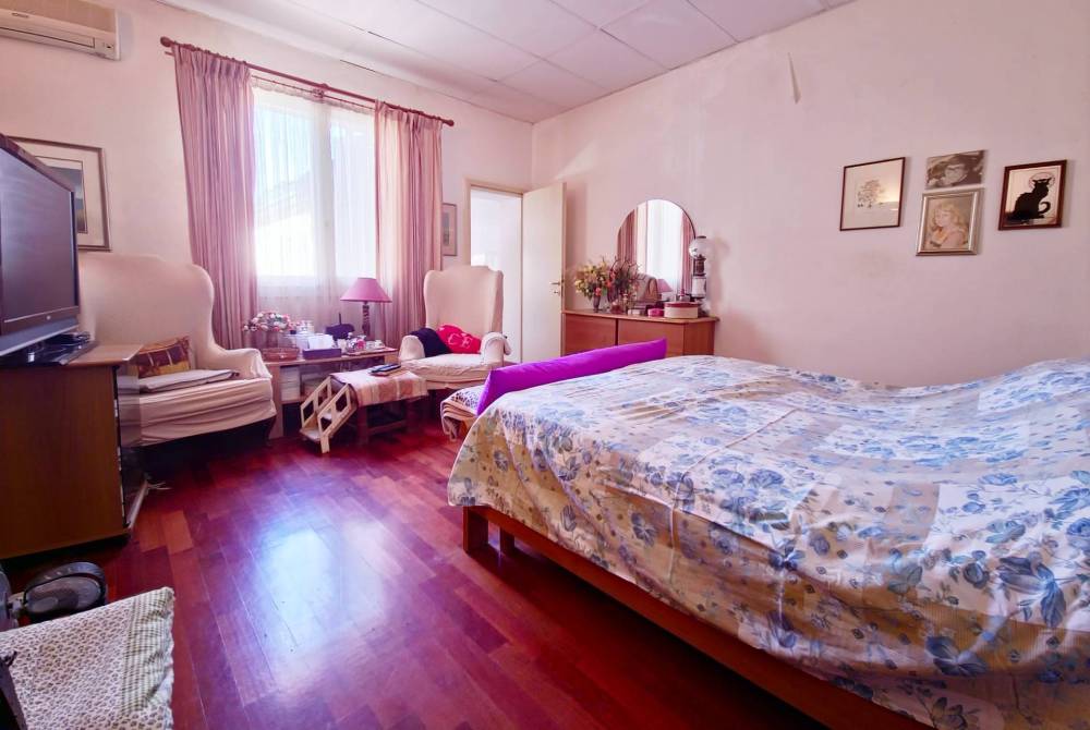 Secondo piano: la zona notte è composta da due camere matrimoniali di ampia metratura e una terza stanza attualmente adibita a guardaroba/stireria, oltre a un bagno principale.