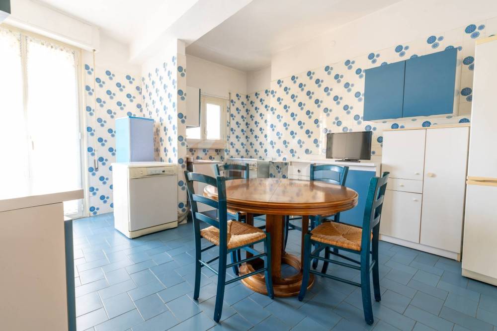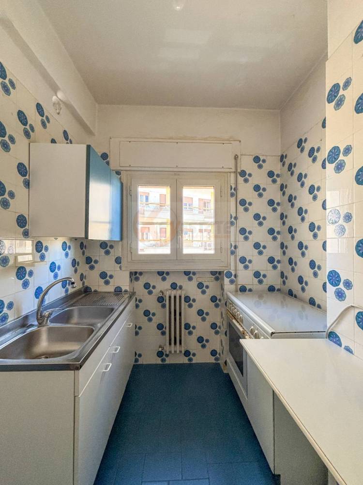 La cucina abitabile, separata, è funzionale e ben organizzata, completa di lavanderia e balcone su Viale Lussu.