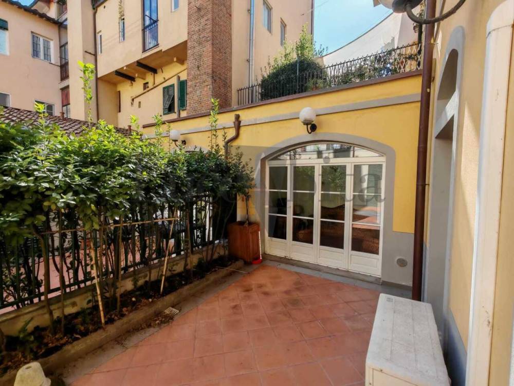 Nel cuore del centro storico appartamento degli anni 2000, situato al piano terra di un prestigioso condominio. L'immobile, facilmente raggiungibile in auto, è composto da un doppio soggiorno che si affaccia su un giardinetto privato di circa 25 mq, cucinotto, ripostiglio, disimpegno utilizzabile come studio, due camere matrimoniali con armadi a muro, due bagni e un vano pluriuso. Luminoso e corredato da cantina al piano terra, è proposto a Euro 550.000
