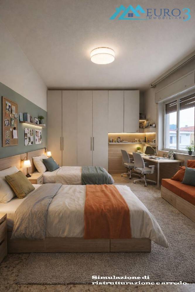 Grazie alla metratura generosa e alla disposizione razionale, l'appartamento si presta perfettamente a una ristrutturazione moderna: è possibile realizzare un secondo bagno e una zona giorno open space con angolo cottura a vista, tutta esposta a sud-est, per ambienti ancora più luminosi e contemporanei.