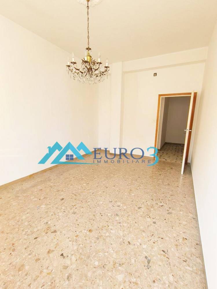 La distribuzione interna attuale comprende: ingresso/disimpegno, due ampie camere matrimoniali, studio, soggiorno, cucina abitabile, bagno finestrato, balcone angolare su due lati.