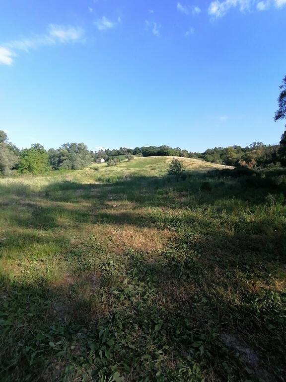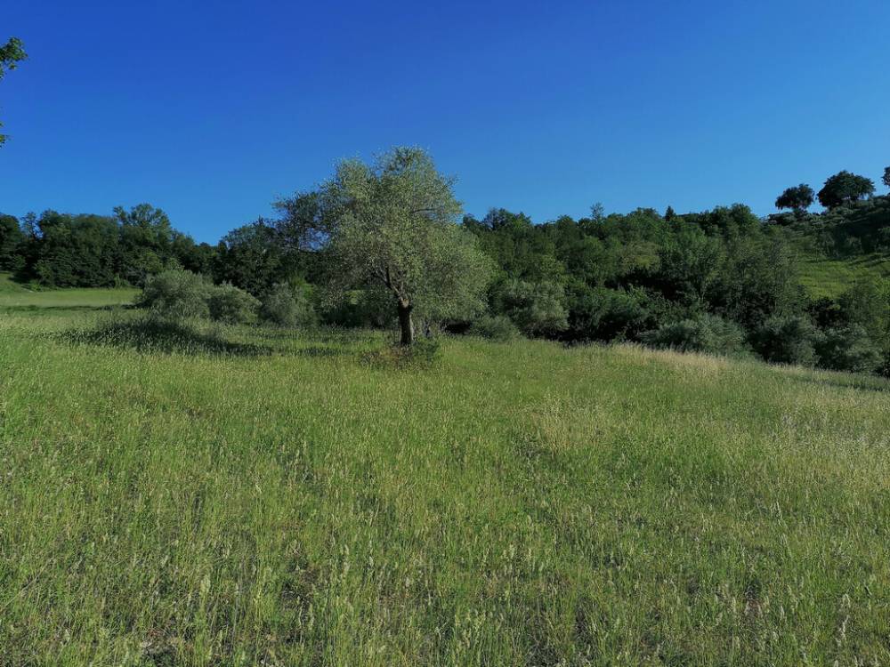Macina di Mogliano: Terreno agricolo con ulivi e fonte di mq. 35.000 ottima esposizione con rudere e annessi per totali mq. 300 ca, da ricostruire