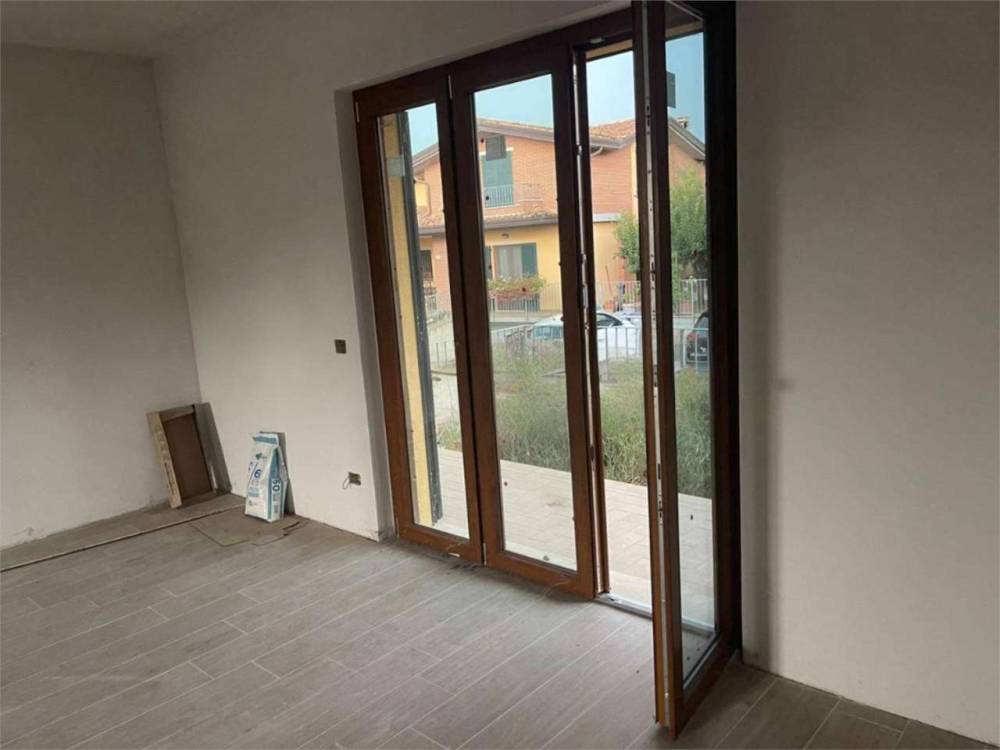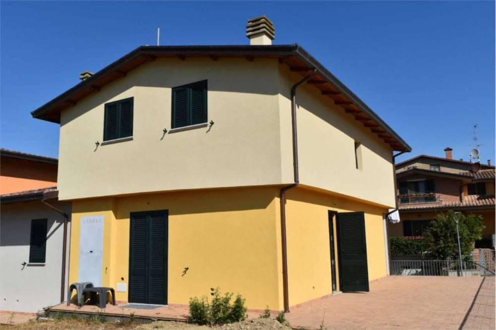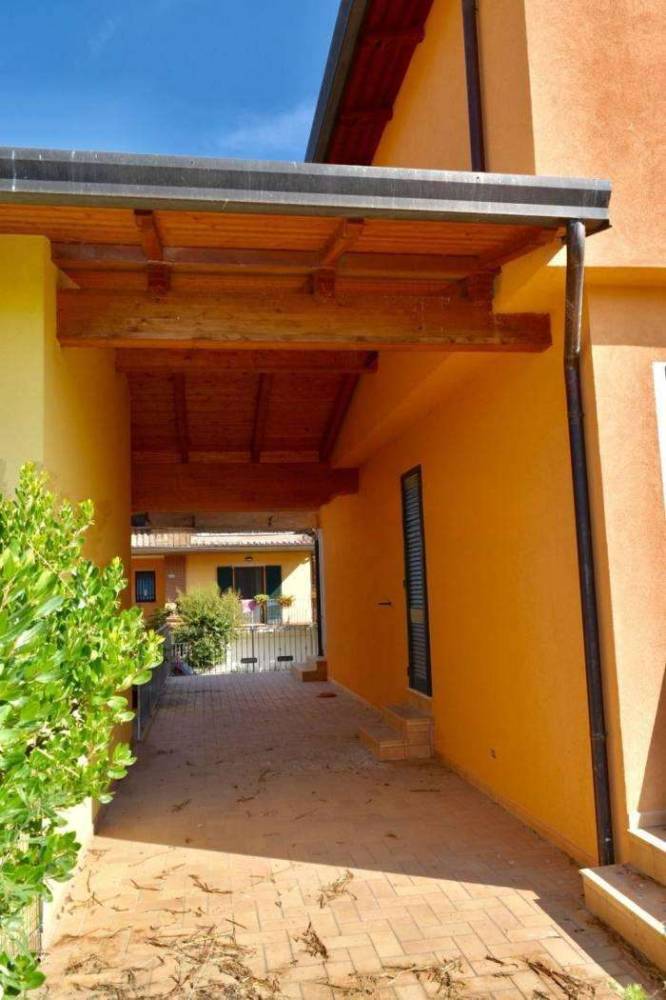 Perugia Pilonico Materno: vendita porzione di trifamiliare . L' unità è composta da : ingresso al piano terra , soggiorno, cucina, bagno , giardino privato di mq 300 c.a., al piano superiore due camere singole, una camera matrimoniale, bagno, al piano sottostrada box auto ed ulteriore ampio vano da utilizzare secondo le proprie esigenze. Tetto ventilato in legno, riscaldamento a pavimento, predisposizione aria condizionata, canna fumaria, impianto fotovoltaico e pannello solare da garage, rustico e lavanderia al piano seminterrato. Completano la proprietà un lastrico solare e un giardino. Le dotazioni includono pannelli solari, predisposizione per aria condizionata e allarme, riscaldamento a pavimento e parquet nella zona notte.