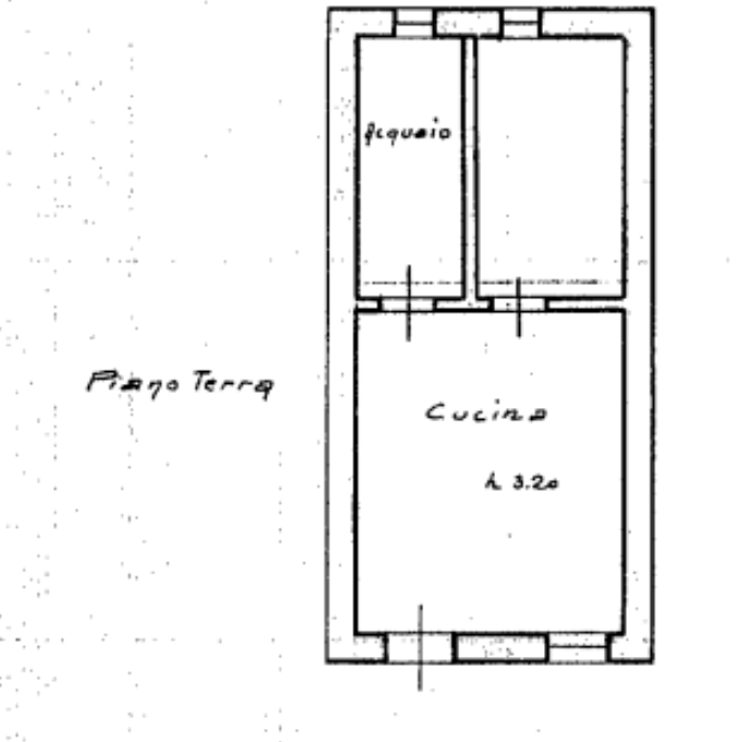 -piano terra con corridoio con caminetto, cucina con secchiaio e sottoscala, salotto e ripostiglio;