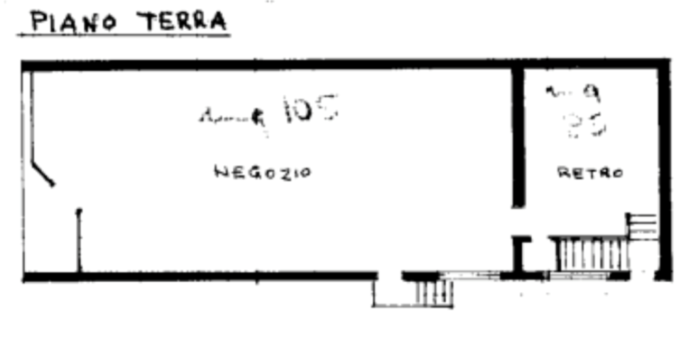 -Negozio alimentari di 204mq costituito da un piano terra con ampia vetrina sul fronte principale e retrobottega con piccolo servizio.