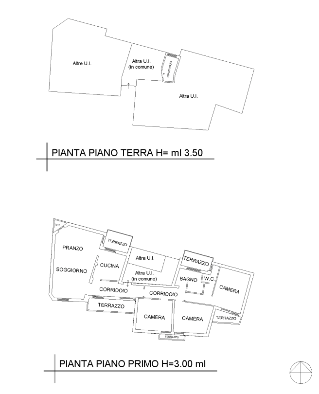 Trattasi di appartamento al primo piano, costituito da ingresso su corridoio, soggiorno/pranzo con due terrazzi, vano cucina, corridoio zona notte, bagno finestrato, due camere e terrazzino comune, camera matrimoniale, terrazzo e ripostiglio esclusivo finestrato è al piano terra.