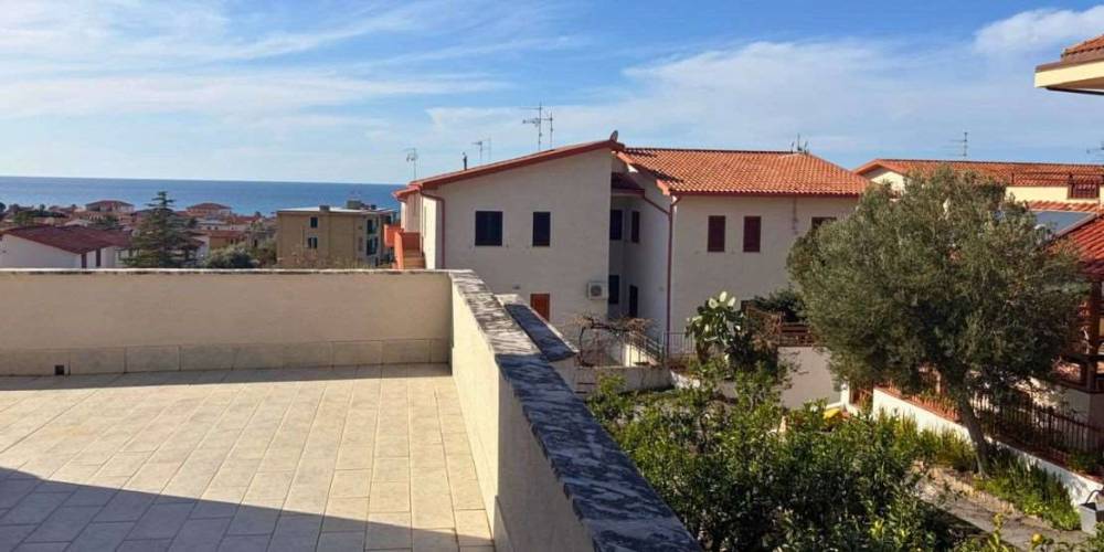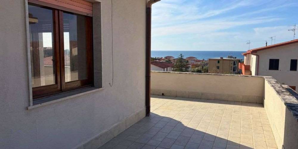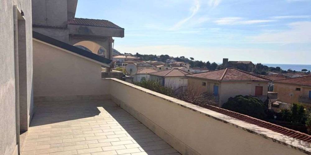 L'immobile dispone di un portico coperto di 6 mq e di un ampio terrazzo panoramico di 40 mq con splendida vista mare, ideale per momenti di relax e convivialità all'aperto.