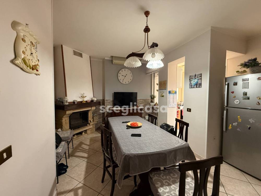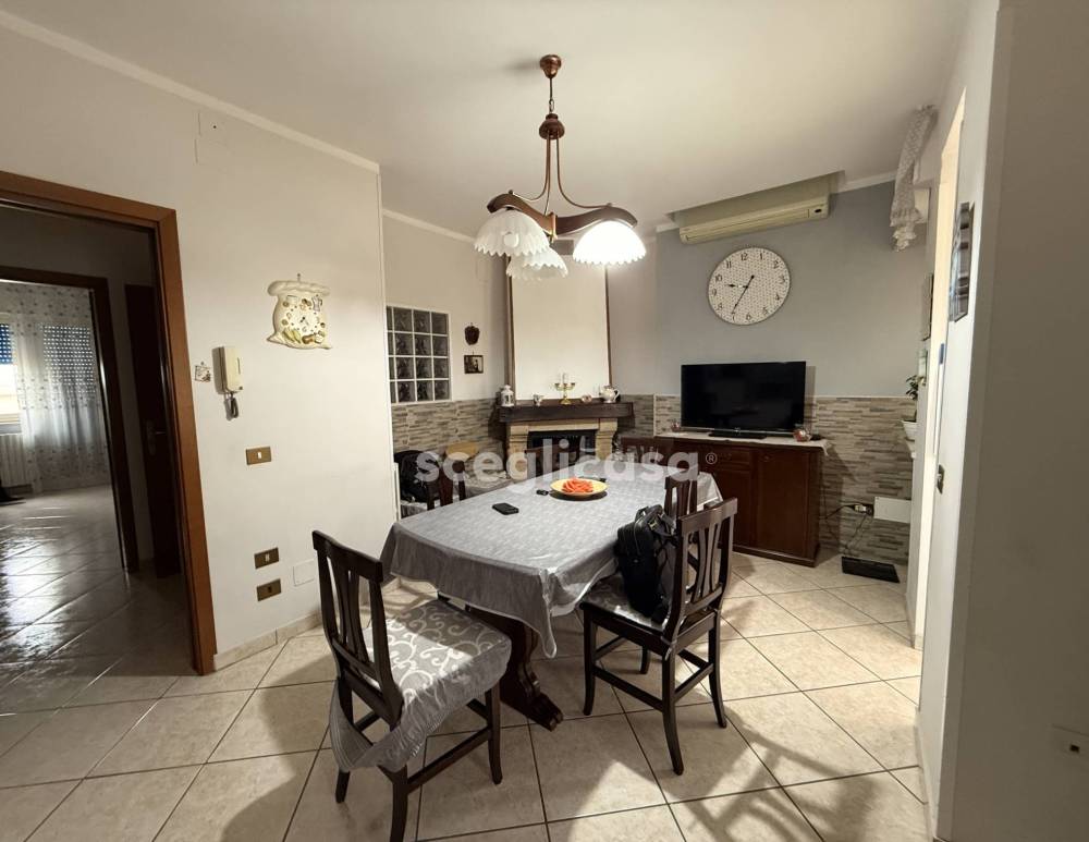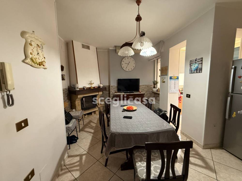 L'appartamento internamente ha una quadratura di 113mq totali, ed è composto da: ingresso su disimpegno, un corridoio che distribuisce in modo ordinato e funzionale tutti gli ambienti della casa, cucina abitabile, arricchita dalla presenza di un camino, con accesso alla veranda, comodo soggiorno, 2 camere da letto matrimoniali, una cameretta con affaccio al balcone. Gli infissi sono in alluminio e doppio vetro-camera. Riscaldamento con climatizzatori caldo/freddo. L'immobile si presenta in ottimo stato, sin da subito abitabile.