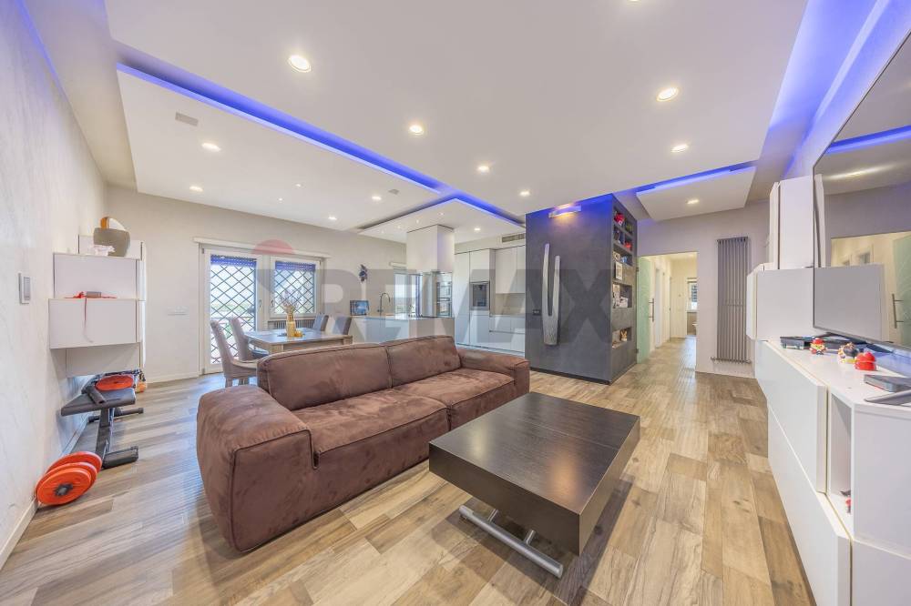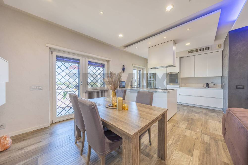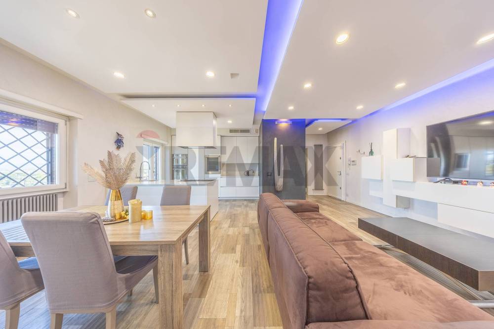 Luminoso e moderno appartamento situato al sesto ed ultimo piano di stabile con copertura a cortina offre una vista mozzafiato sulla città di Roma.