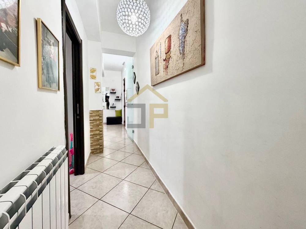 Limmobile si trova in un contesto comodo e ben organizzato, con doppio ingresso condominiale, uno da Largo Giuliana e laltro da Via Giafar. Lingresso apre su un salone doppio, ideale per accogliere ospiti o per creare una zona living ampia e confortevole. La cucina abitabile in muratura è separata e ben strutturata, con accesso a una veranda utilizzata come lavanderia, pratica e funzionale.