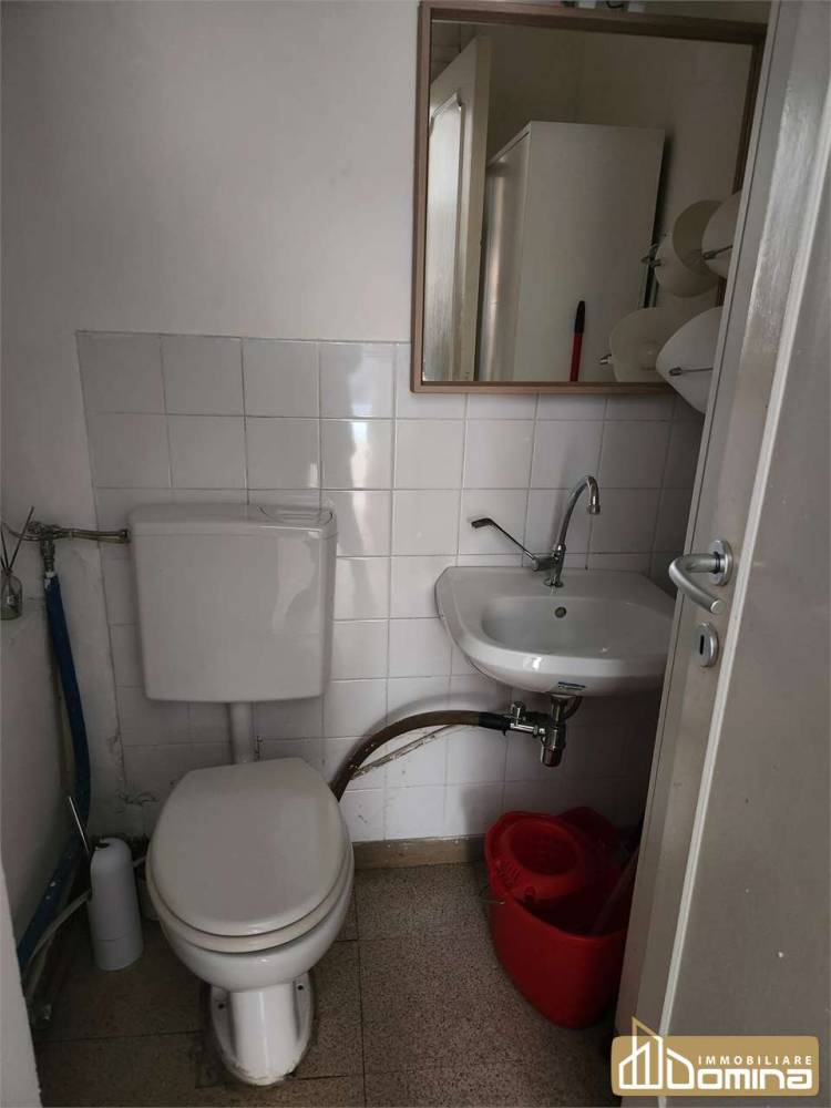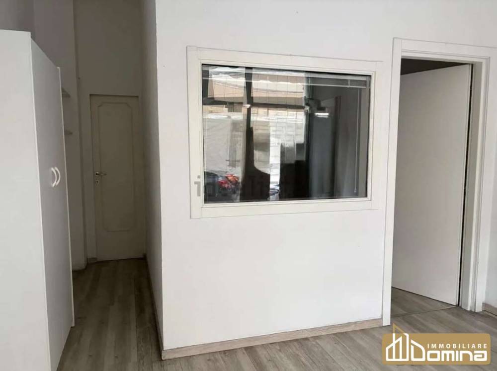 Il locale, che misura circa 25 mq, è dotato di bagno ed è attualmente suddiviso al centro da una parete per poter ospitare due postazioni ufficio.