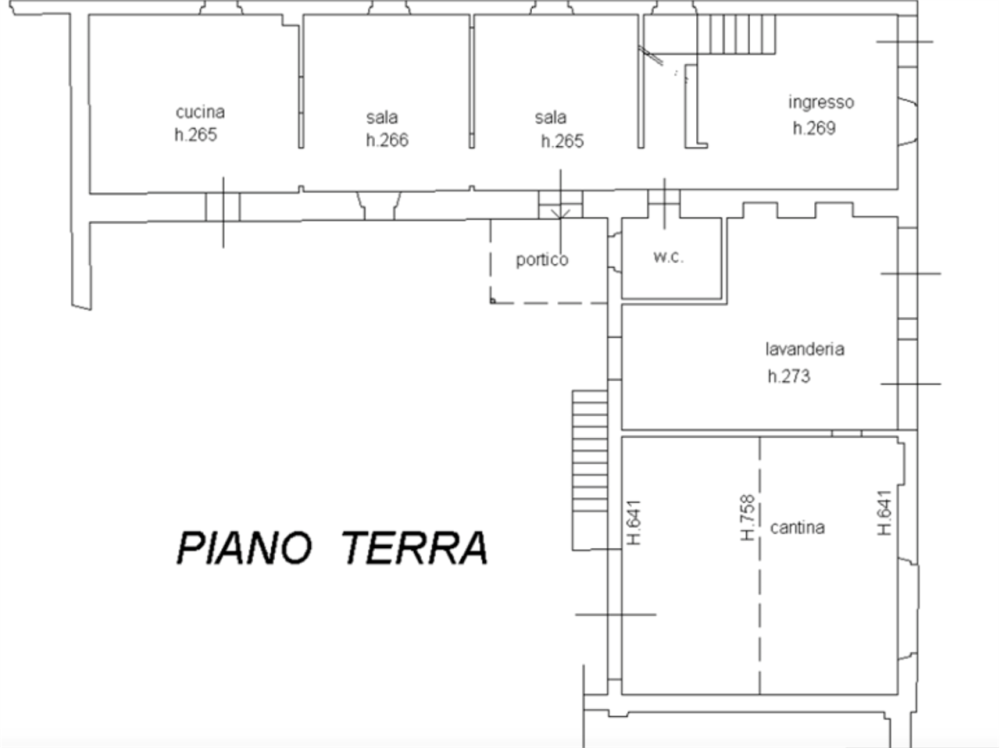 Completa la proprietà una cantina e una cisterna al piano interrato per una superficie complessiva di 26,00 mq.