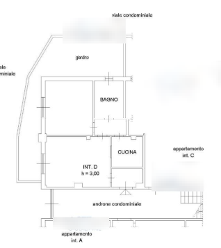 L'immobile è posto al piano terra, si compone di: disimpegno, cucina, bagno, due camere.