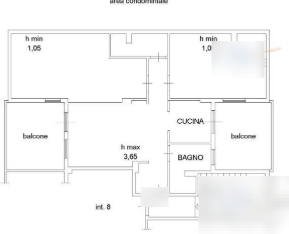 L'immobile è posto al terzo piano e si compone di: ingresso, disimpegni e ripostiglio sottotetto, soggiorno, cucina, bagno, due camere e due balconi.
