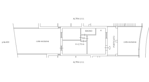 L'abitazione è composto di un vano con angolo di cottura e porticato, disimpegno, due vani e bagno.