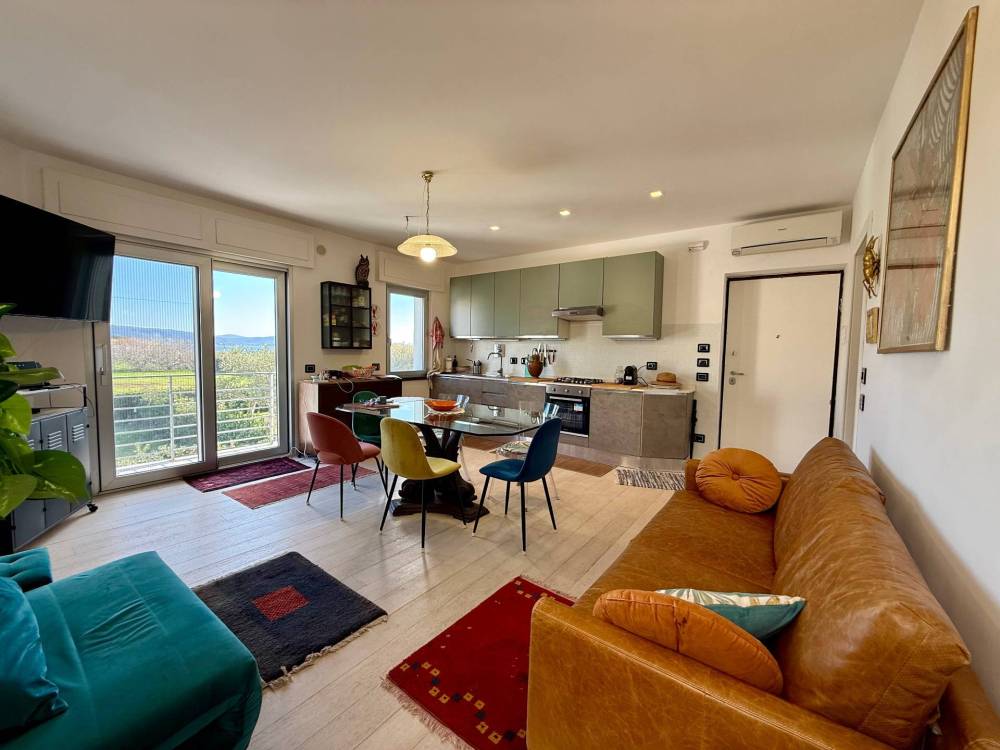 Lappartamento è composto da un luminosissimo soggiorno con cucina a vista, due camere matrimoniali, bagno e ripostiglio e dispone di un impianto di riscaldamento a pavimento e aria condizionata.