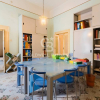 Dal primo ingresso si accede ad un grande disimpegno/ corridoio, alla cui sinistra tinello, cucina a legna in muratura risalente allepoca della costruzione, affaccio su balconcino interno e bagno di servizio. Speculare allingresso, grande soggiorno con camino e grandi porte finestre con affaccio sul balcone prospiciente alla facciata principale. Sul lungo corridoio dotato di armadi a muro, parallelo al soggiorno ed alle tre sontuose, per dimensione, camere da letto, incontriamo il secondo ingresso ed in fondo una sala bagno con comodo disimpegno. La soluzione è angolare e dispone di affacci su balconi per ogni lato, ha tre grandi finestre, il che la rende molto luminosa e ben arieggiata, ha pavimenti a mosaico depoca ottimamente tenuti, volte alte, diversi soppalchi, radiatori in ghisa ed è ovviamente termo autonomo.