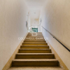 Una scalinata, in pietra, ci conduce al piano, con pianerottolo terrazzato con affaccio sulla corte, rigorosamente in pietra. Siamo in presenza di un doppio ingresso, come si può facilmente evincere dalla planimetria.