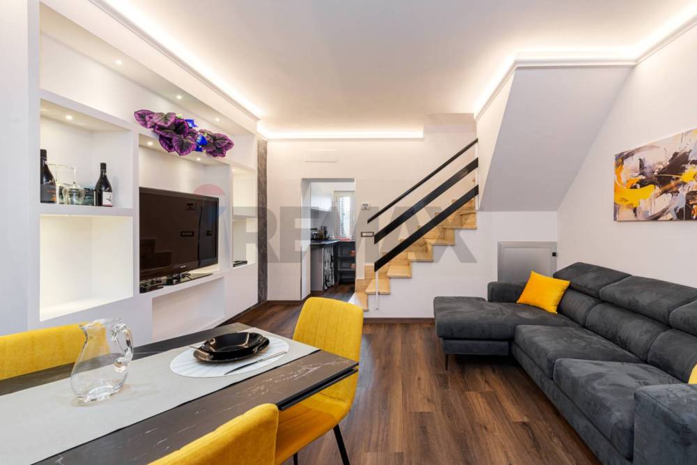 La proprietà, disposta su due livelli, è stata oggetto di un restauro totale che ha saputo coniugare stile moderno e comfort abitativo. Ogni dettaglio è stato curato: dagli impianti di nuova generazione all'illuminazione di design, fino alla scelta di rivestimenti di pregio.