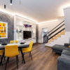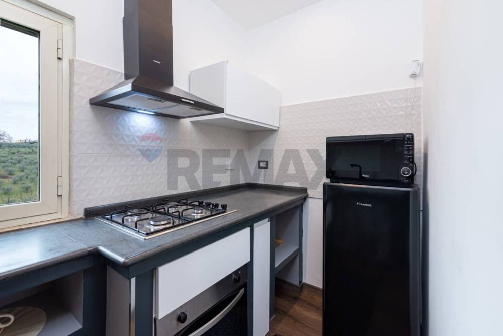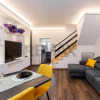 Piano Terra: Un'accogliente zona living open space accoglie l'ospite, con un'area pranzo definita e un angolo relax, servita da un cucinotto moderno, completamente attrezzato e funzionale.