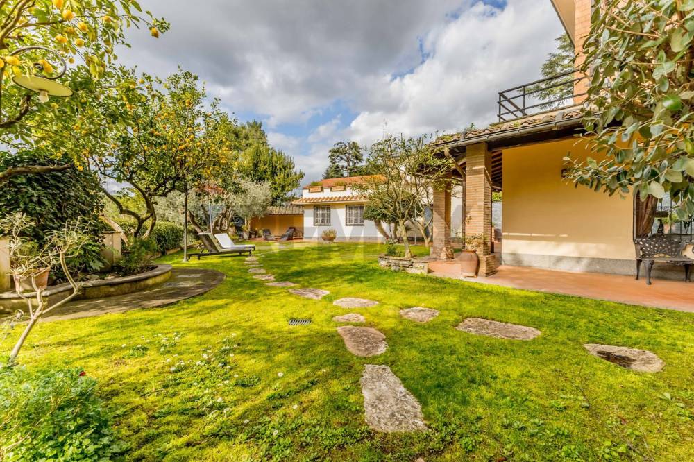 La villa dispone di ampie camere da letto, bagni rifiniti con materiali di pregio, come il travertino lavorato a mano nel bagno principale, e mansarde abitabili con soffitti alti, ideali per creare spazi personalizzati.