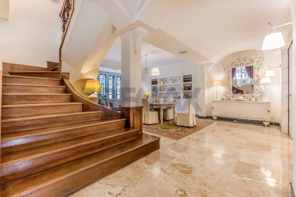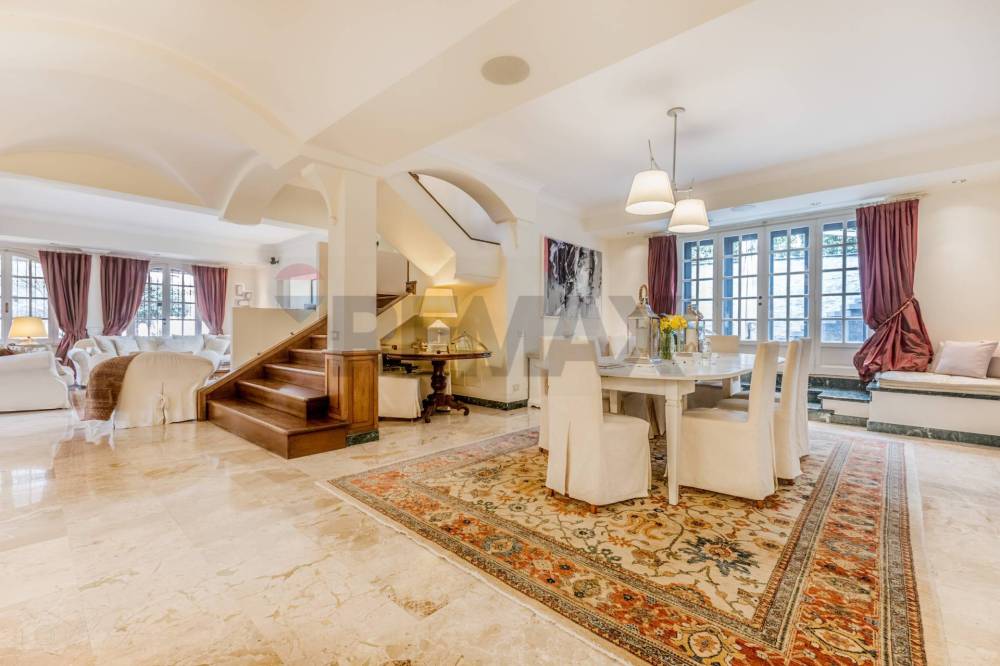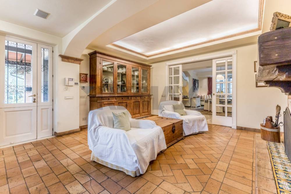 Appena entri, ti colpisce la cura per i dettagli: pavimenti in marmo pregiato e parquet di rovere massello, travi in legno a vista che conferiscono un'atmosfera calda e accogliente, e vetrate blindate per una sicurezza totale. Il salone è un vero gioiello, con un camino di design che diventa il fulcro della zona giorno per non dimenticare la cucina, con un camino di grandi dimensioni, perfetto per le serate invernali.
