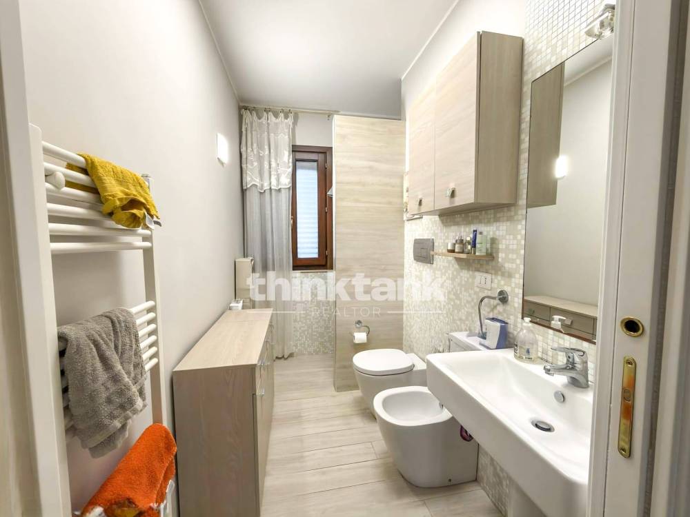 Lappartamento è stato recentemente rifinito con gusto contemporaneo e si compone di 4 locali ben distribuiti: ampio soggiorno con zona pranzo, cucina separata o a vista, due camere da letto e due bagni. Gli ambienti sono funzionali e pensati per la vita quotidiana.