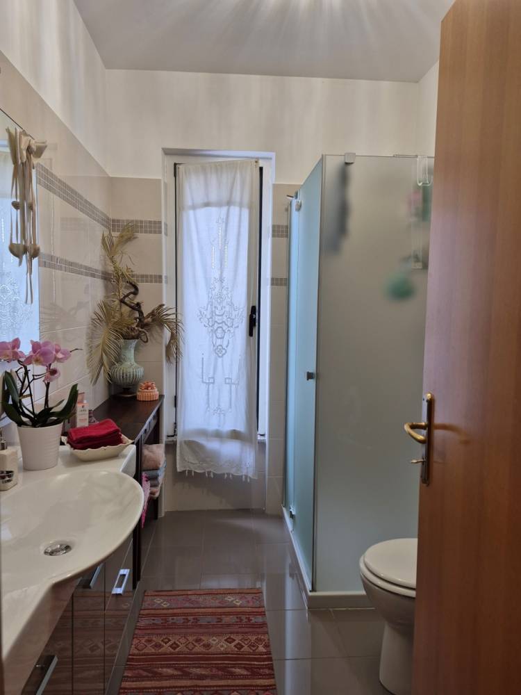 Appartamento ad ingresso indipendente in trifamigliare in zona residenziale e vicino a tutti i servizi: ingresso in ampio soggiorno con accesso diretto a terrazza, cucina abitabile con accesso a terrazza solarium attrezzata, studio/cameretta, bagno, ampia camera padronale con bagno, camera doppia. Pergola, forno/barbecue, piccolo giardino. Collegati all'appartamento garage e cantina. Posti auto di proprietà esterni n° 2. Abitabile subito.