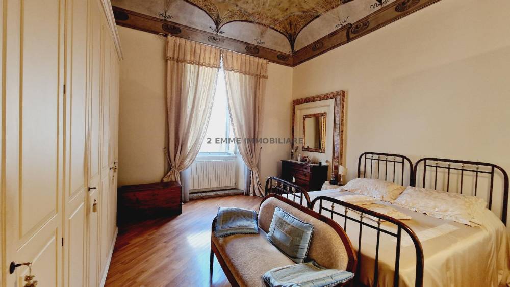 Al piano primo di Palazzo Cafratelli-Seghetti, al civico 251 di Corso Mazzini si trova questo splendido appartamento di 160 mq posto al piano primo con ascensore. Prima del restauro del 2002 è stato sede del monastero delle Suore domenicane le quali vi istituirono una scuola per l'infanzia, materna ed elementare. L'appartamento composto da ingresso su disimpegno, piccolo bagno per gli ospiti con finestra, ampio e luminoso soggiorno, cucina abitabile e grazioso chiostro interno di proprietà di circa 40 mq. Al piano principale ci sono una master room con un grande bagno, armadio lineare su misura di oltre quattro metri. Il salone e la camera matrimoniale presentano splendidi affreschi restaurati. Al piano secondo si accede tramite scala a chiocciola, qui troviamo la seconda camera da letto con bagno privato e un ripostiglio. Lo stato attuale, interno ed esterno, è ottimo. Portone blindato, infissi in legno con doppio vetro, persiane in legno. L'immobile non ha subito danni a causa degli eventi sismici del 2017. Portone blindato, videocitofono. Venduta parzialmente arredata.E' possibile ricavare una terza camera realizzando la cucina a vista sul soggiorno. Giardino condominiale. Un fondaco di 9 mq al piano terra, facilmente accessibile anche con la bici. A pochi minuti a piedi dalle principali piazze della città.
