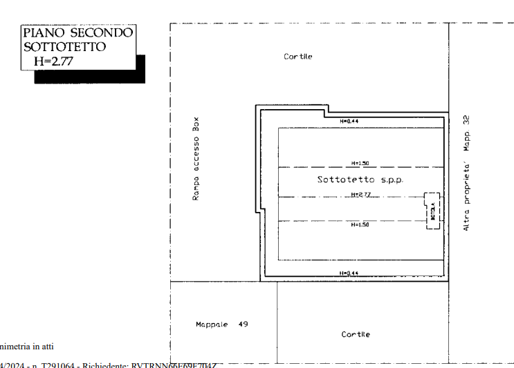 Appartamento situato a Paderno Dugnano (MI) in Via Trieste, disposto su due livelli (piano primo e secondo), accessibile tramite scala esterna in muratura di proprietà esclusiva. L'unità è composta da tre camere, cucina e doppi servizi, con annesso vano sottotetto al piano secondo. Completano la proprietà un box singolo di 15 mq al piano interrato.