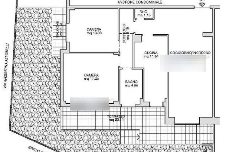 Appartamento situato a Roma (RM) in Via Argentina Altobelli, posto al piano rialzato. L'unità abitativa è composta da soggiorno/ingresso, cucina, corridoio, due camere da letto, wc e bagno. Completano la proprietà un giardino con ripostiglio e due superfici scoperte poste a quota superiore rispetto al giardino, di cui una accessibile dalla camera più piccola e l'altra dalla cucina, dalla camera più grande e dal soggiorno.
