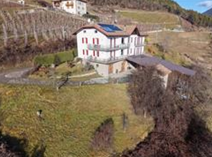 Casa singola con giardino situata a Cles (TN), frazione Dres. L'abitazione comprende: due garage al piano terra, una tettoia, una cantina, un ripostiglio, un soggiorno, una cucina, tre camere da letto, un bagno, due poggioli e una soffitta.